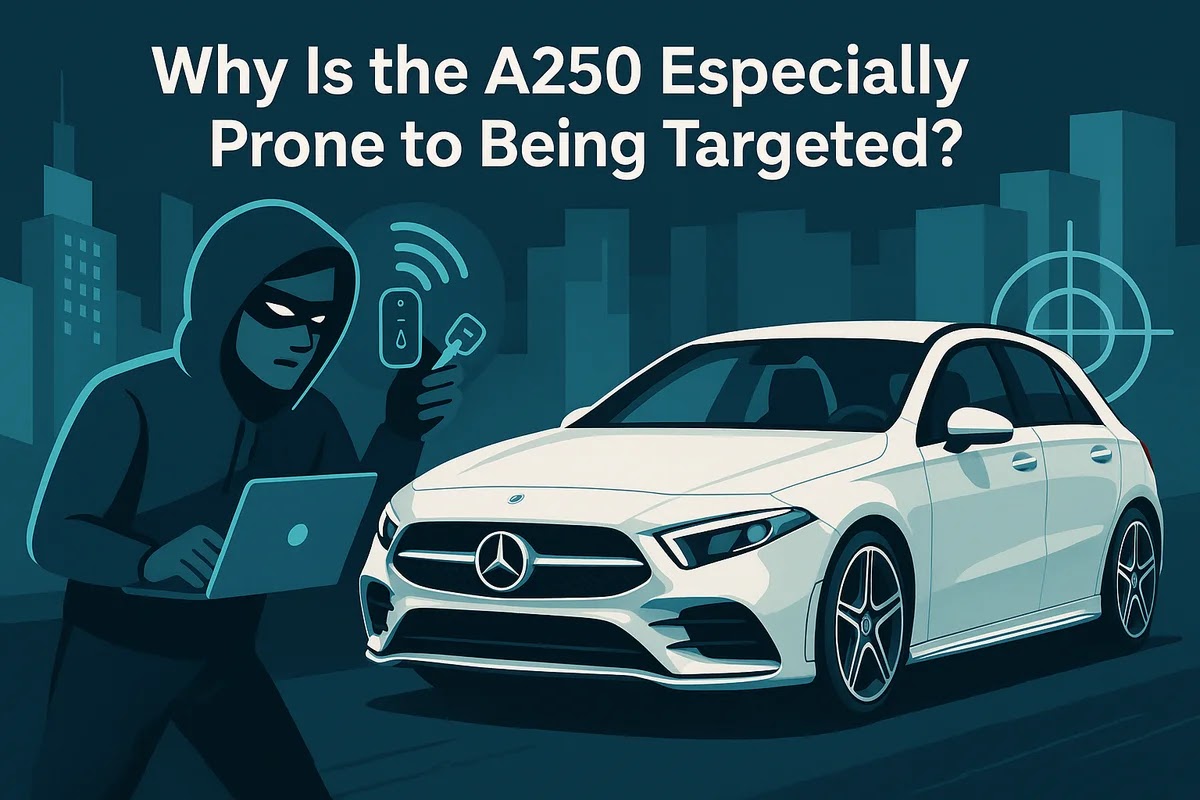 ベンツA250はその人気と性能ゆえに、盗難のターゲットとなりやすい車種です。スマートキーの電波悪用やCANインベーダーといった手口は巧妙化しており、都市部に限らず全国各地で被害が発生しています。